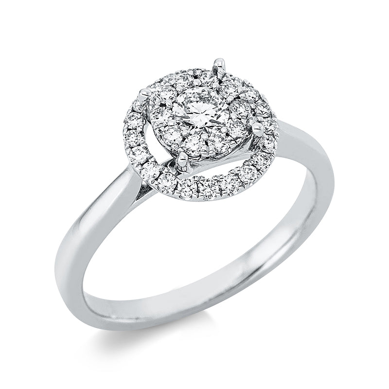 Ring 18 kt WG, 10 Brill. 0,11 ct, TW-si, 1 Brill. 0,19 ct, TW-vsi, 20 Brill. 0,16 ct, TW-si