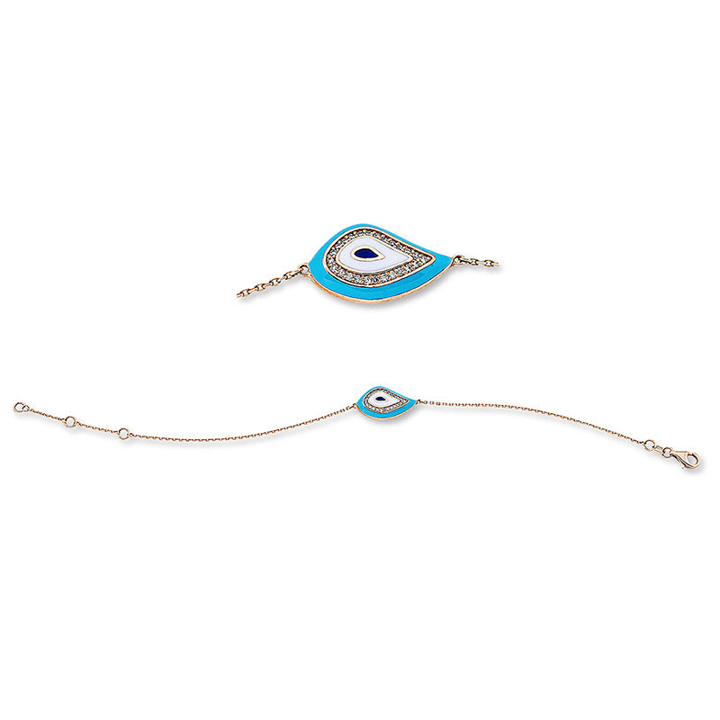 Armband 14 kt RG, 25 Brill. 0,09 ct, TW-vsi, 1 Emaille türkis