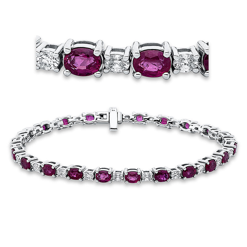 Armband 18 kt WG, 45 Nav. 2,13 ct, W-si, 45 Rubine 13,40 ct rot