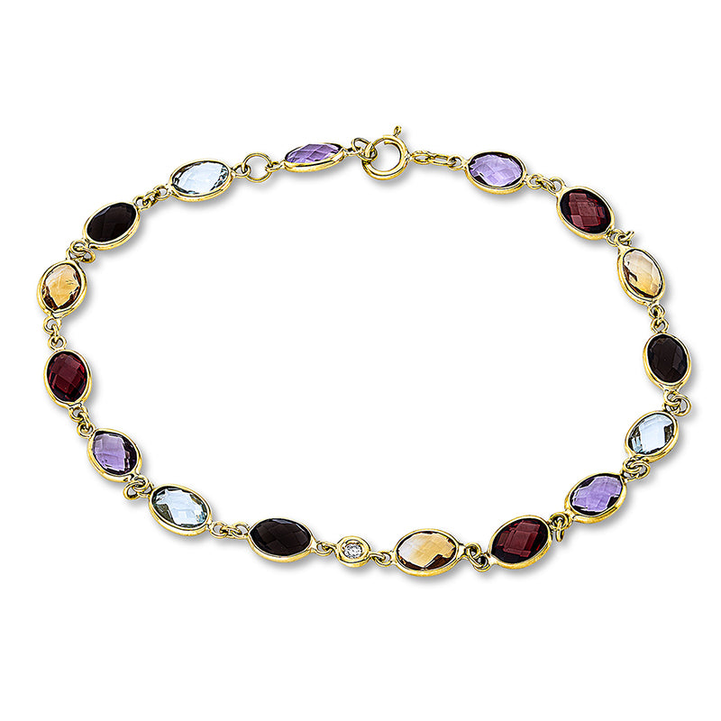 Armband 18 kt GG, 1 Brill. 0,02 ct, TW-si, 16 Farbsteine 7,76 ct multicolor
