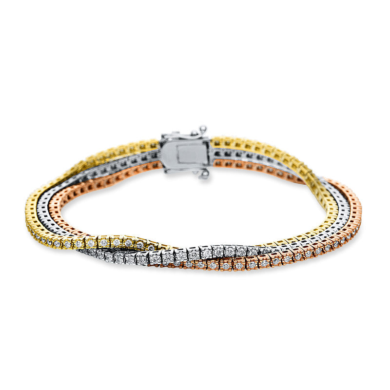 Armband 18 kt WG+GG+RG, 222 Brill. 3,00 ct, TW-si