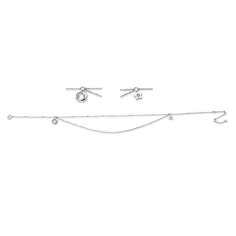 Fußkette 18 kt WG, 4 Brill. 0,07 ct, W-si