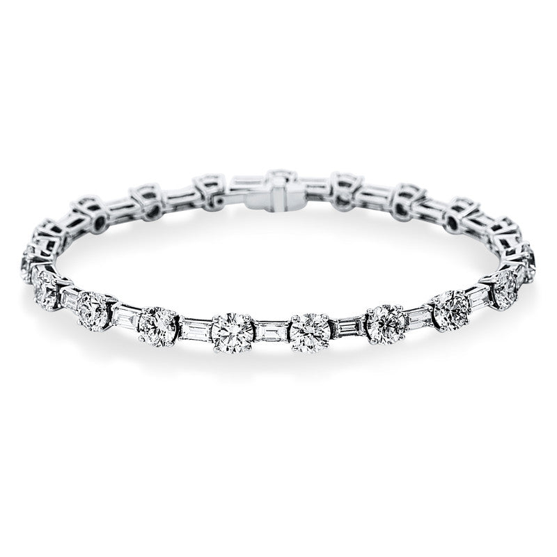 Armband 18 kt WG, GIA: 15pcs, 9 Brill. 4,12 ct, I-vsi, 6 Brill. 2,69 ct, I-vvs, 19 Bag. 1,74 ct, 4 Brill. 1,46 ct