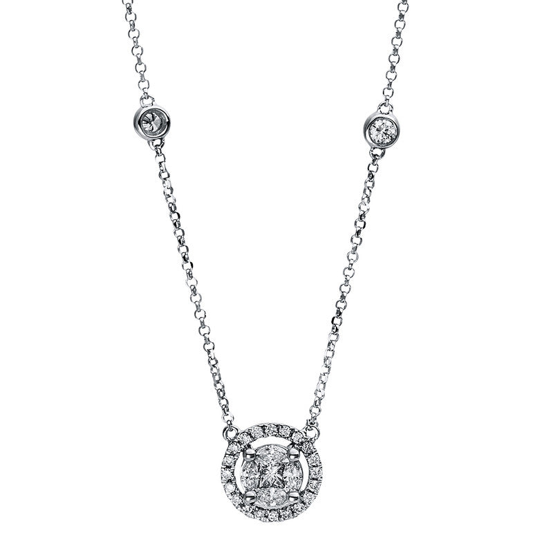 Collier 18 kt WG, 4 Nav. 0,11 ct, TW-si, 1 Princ. 0,04 ct, TW-si, 26 Brill. 0,29 ct, TW-si