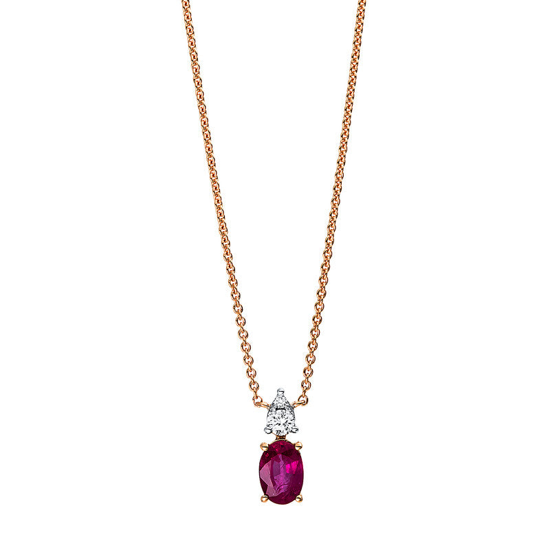 Collier 18 kt RG, 2 Brill. 0,06 ct, TW-si, 1 Farbsteine 0,44 ct pink