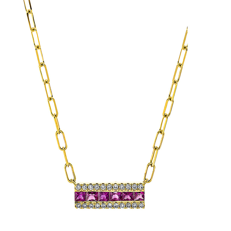 Collier 18 kt RG. 6 Brillanten 0.15 ct. W-pi. 7 Rubine 1.70 ct rot. L:43.2 cm