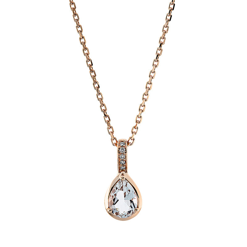 Collier 18 kt RG, mit ZÖ 40 cm + 43 cm, 5 Brill. 0,03 ct, TW-si, 1 Morganit 0,66 ct rosa