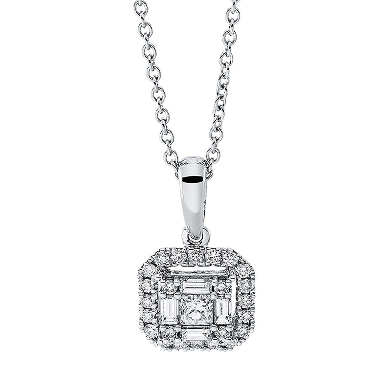 Collier 18 kt WG, mit Öse, 6 Bag. 0,08 ct, F-si, 51 Brill. 0,24 ct, F-si
