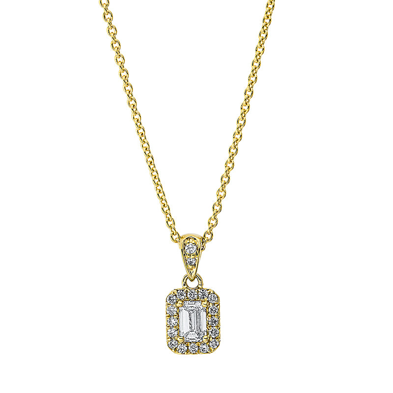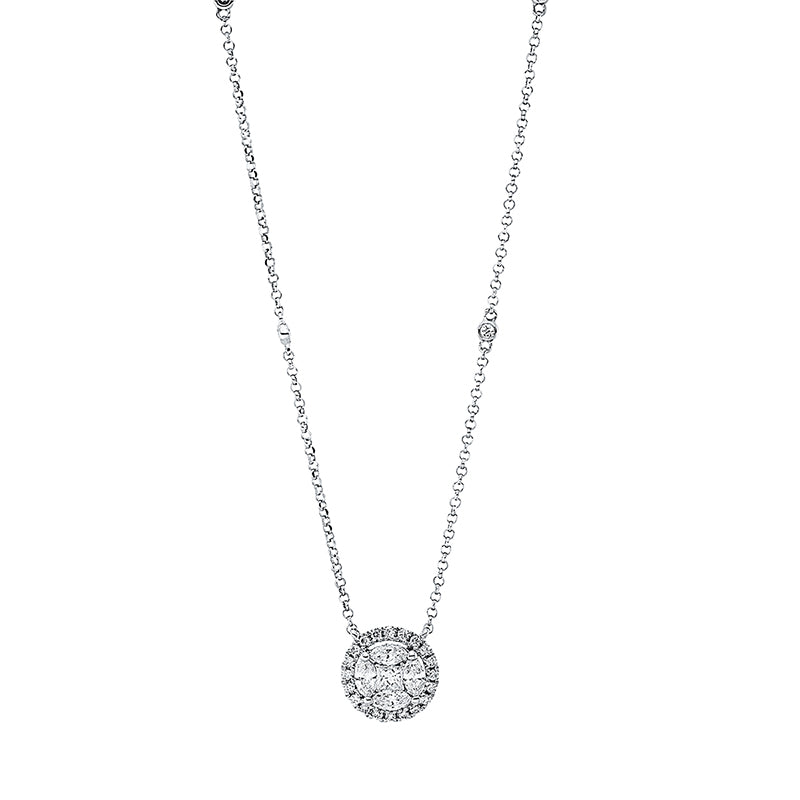 Collier 18 kt WG, mit Öse, 3 Bag. 0,19 ct, TW-si, 6 Princ. 0,21 ct, TW-si, 22 Brill. 0,18 ct, TW-si
