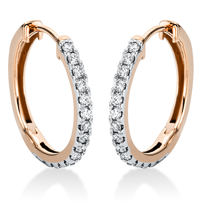Creolen 18 kt RG. Fassung rhodiniert. 30 Brillanten 0.50 ct. TW-si
