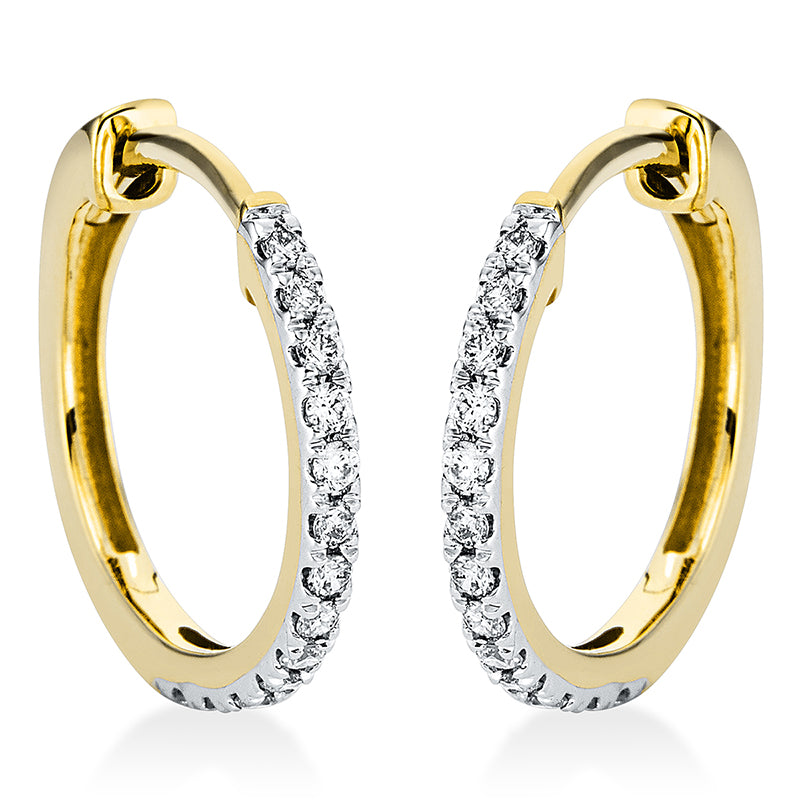 Creolen 18 kt GG. Fassung rhodiniert. 26 Brillanten 0.20 ct. TW-si