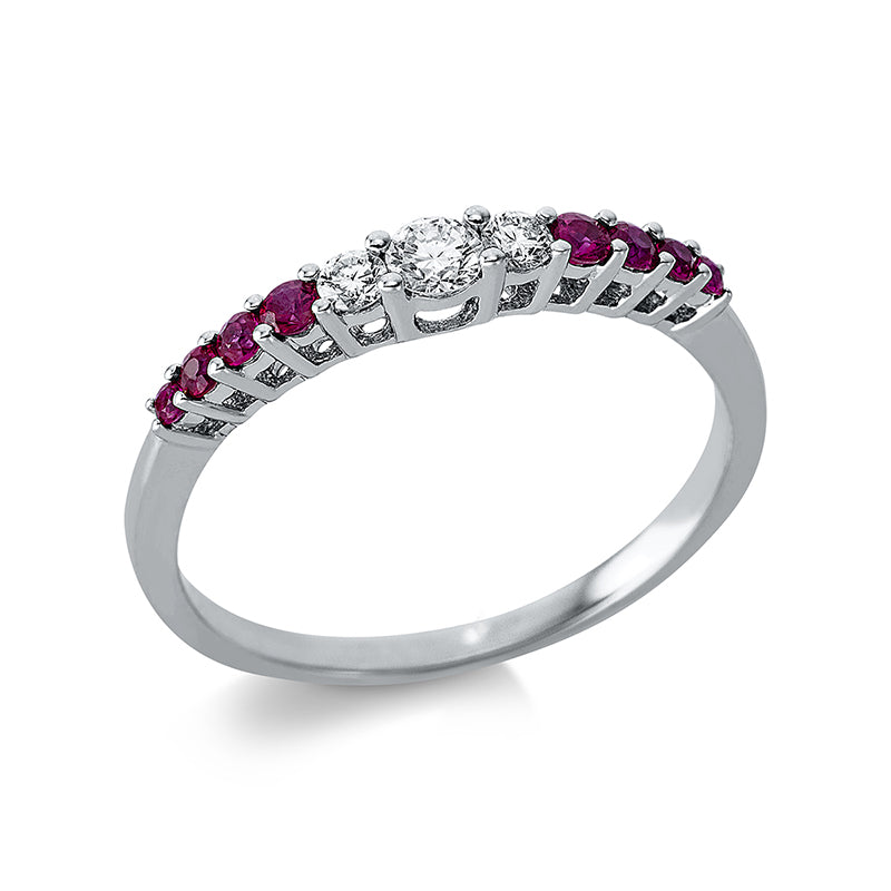 Ring 18 kt WG. 3 Brillanten 0.16 ct. TW-si. 8 Rubine 0.15 ct rot. Weite:53