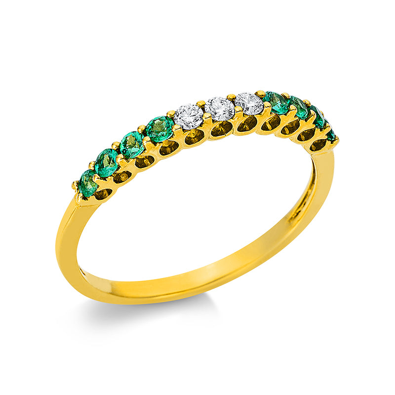 Ring 18 kt GG. 3 Brillanten 0.10 ct. TW-si. 8 Smaragde 0.21 ct grün. Weite:50