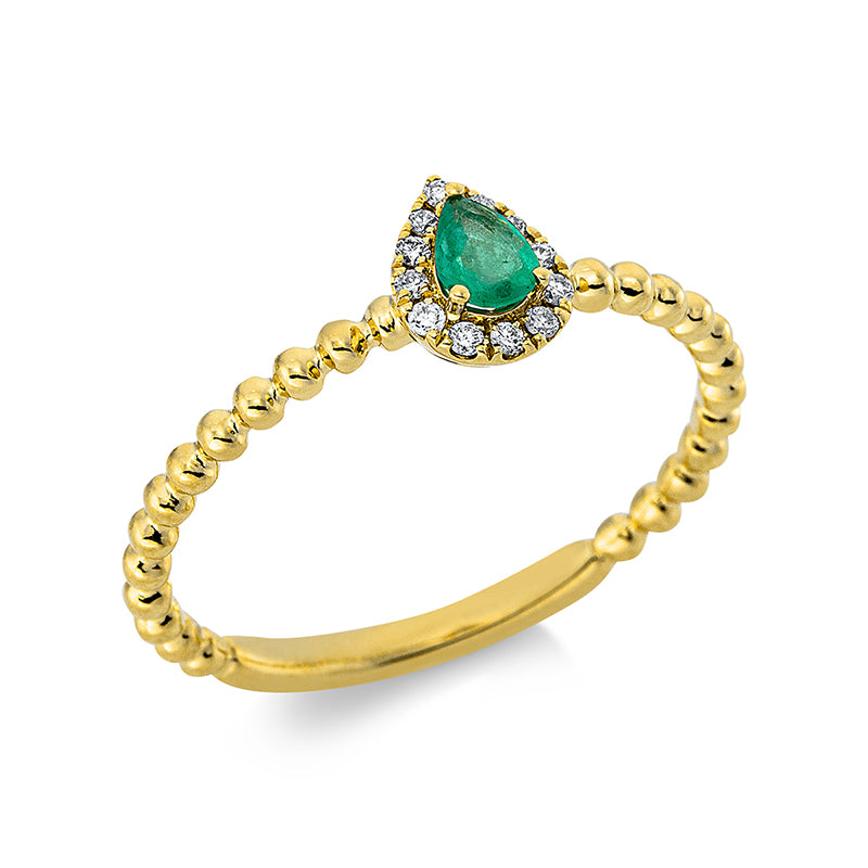 Ring 18 kt GG, 12 Brill. 0,05 ct, TW-pi, 1 Smaragd 0,13 ct grün
