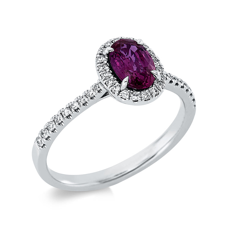 Ring 18 kt WG, 38 Brill. 0,20 ct, TW-si, 1 Rubin 0,90 ct rot
