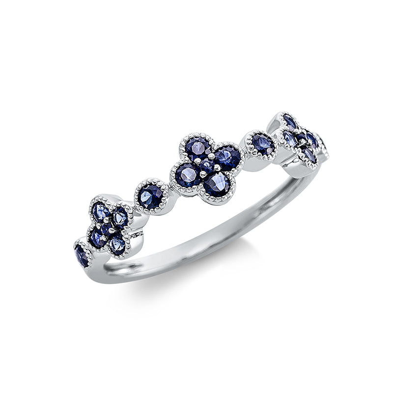 Ring 18 kt WG, 15 Saphire 0,52 ct blau