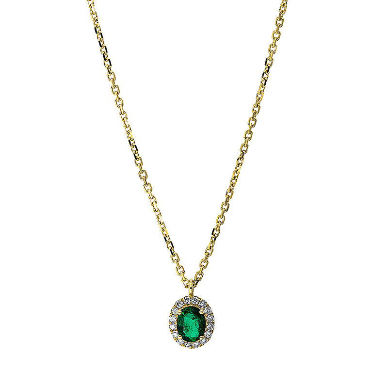 Collier 18 kt GG. 16 Brillanten 0.08 ct. TW-si. 1 Smaragd 0.31 ct grün. L:43.2 cm