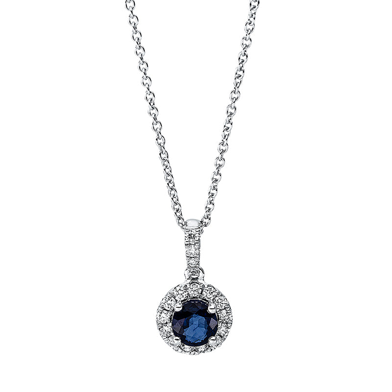 Collier 18 kt WG, mit ZÖ 40 cm + 42.5 cm, 17 Brill. 0,20 ct, TW-si, 1 Saphir 0,59 ct blau
