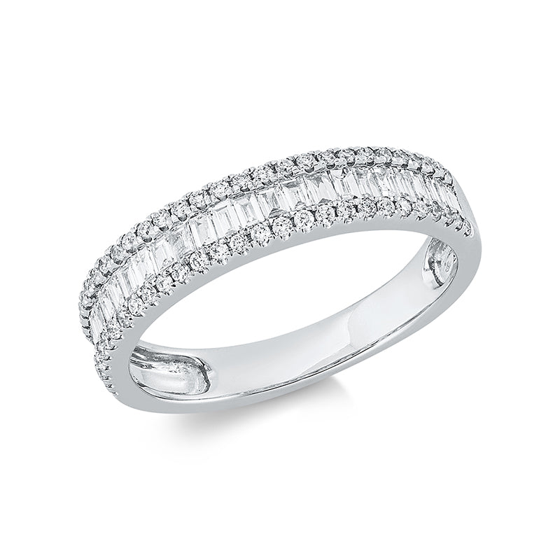 Ring 18 kt WG, 60 Bag. 0,59 ct, TW-si, 106 Brill. 0,42 ct, TW-si