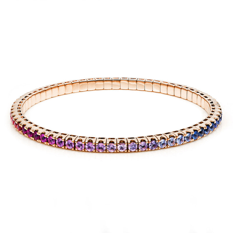 Armband 18 kt RG, Flex-Band, variabel, 60 Saphire 5,83 ct multicolor