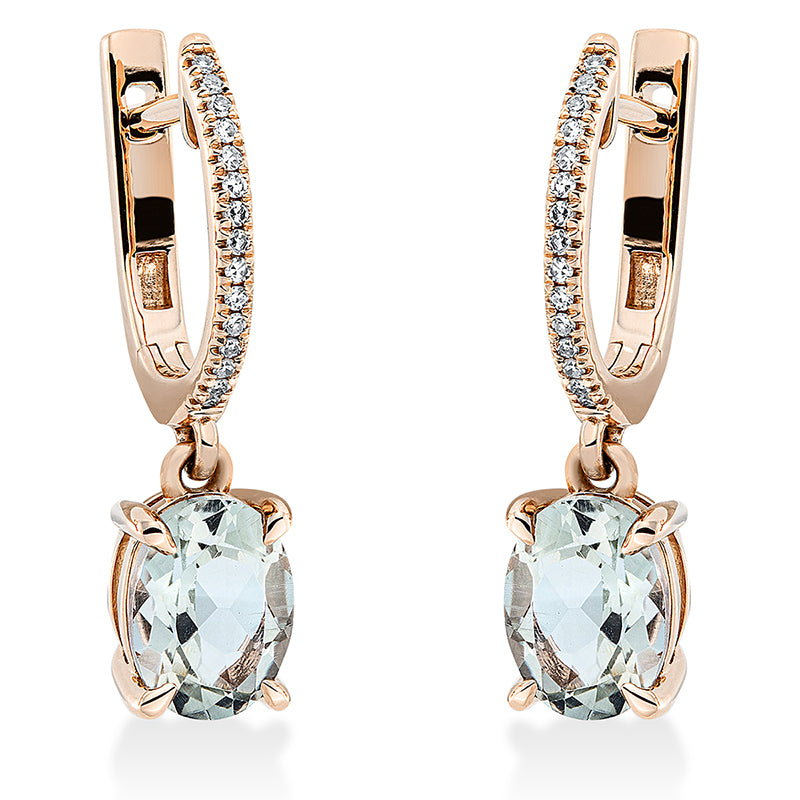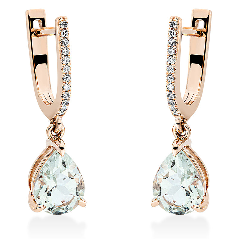 Ohrschmuck 18 kt RG, 30 Dia. 0,09 ct, TW-si, 2 Amethyste 2,38 ct grün