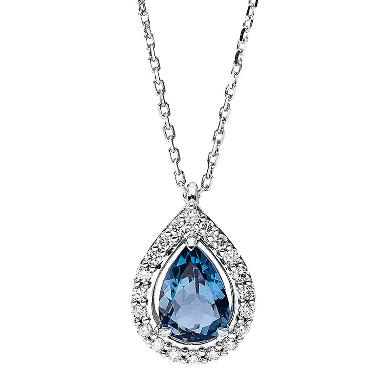 Collier 18 kt WG, mit ZÖ 40 cm + 42 cm, 16 Brill. 0,16 ct, TW-si, 1 Topas 0,85 ct Lond. blue