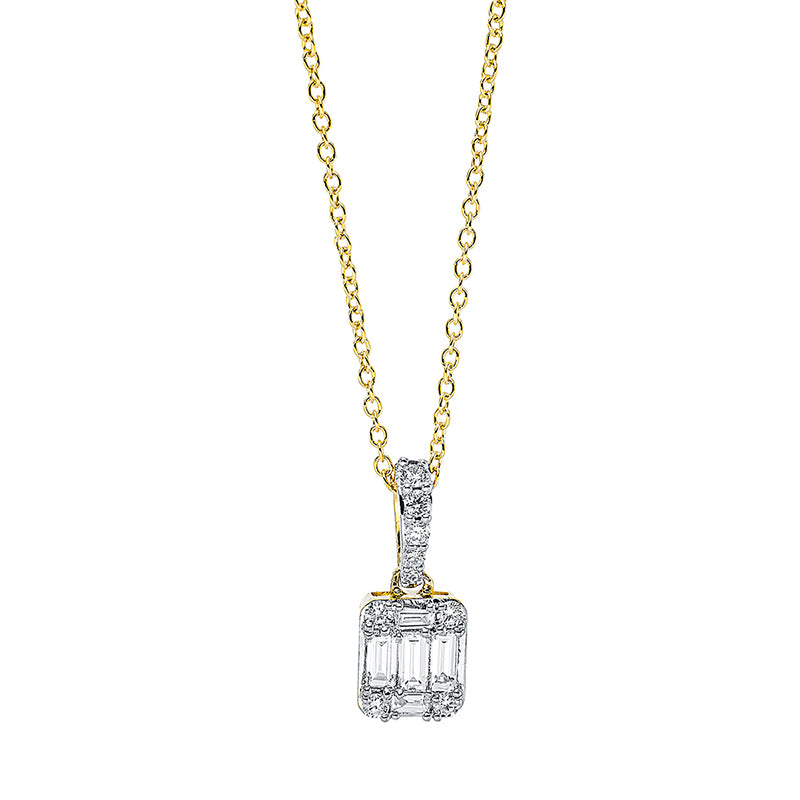 Collier 18 kt GG, mit ZÖ 41 cm, 6 Brill. 0,07 ct, TW-si, 2 Bag. 0,03 ct, TW-si, 3 Bag. 0,12 ct, TW-si, 2 Brill. 0,01 ct, TW-si