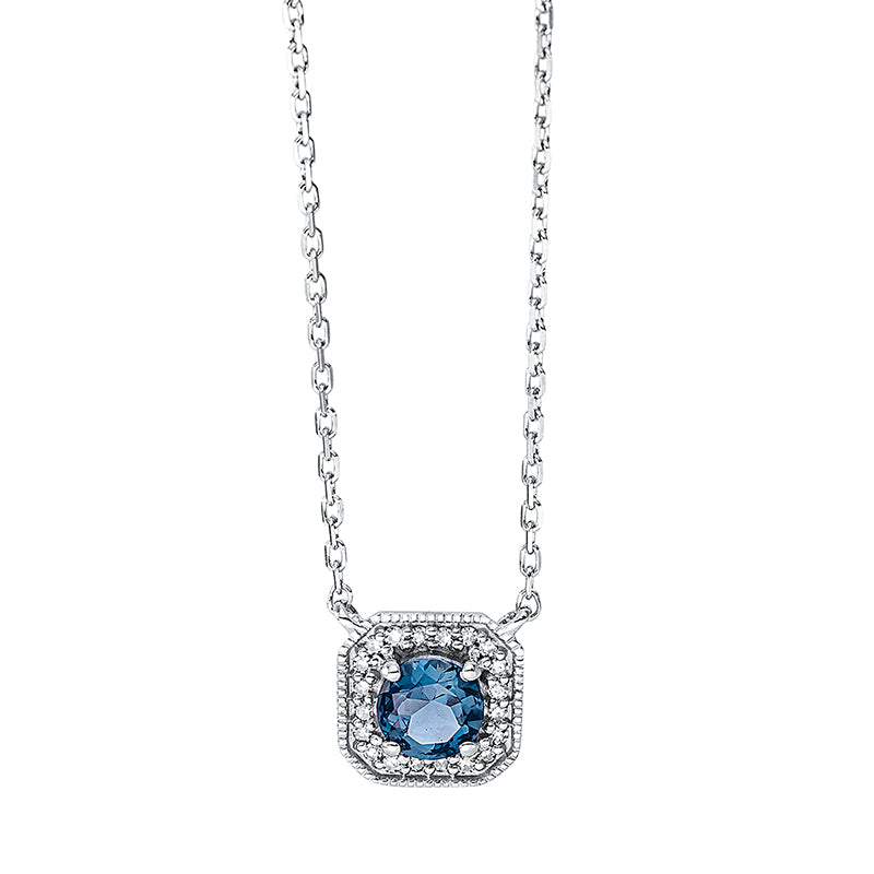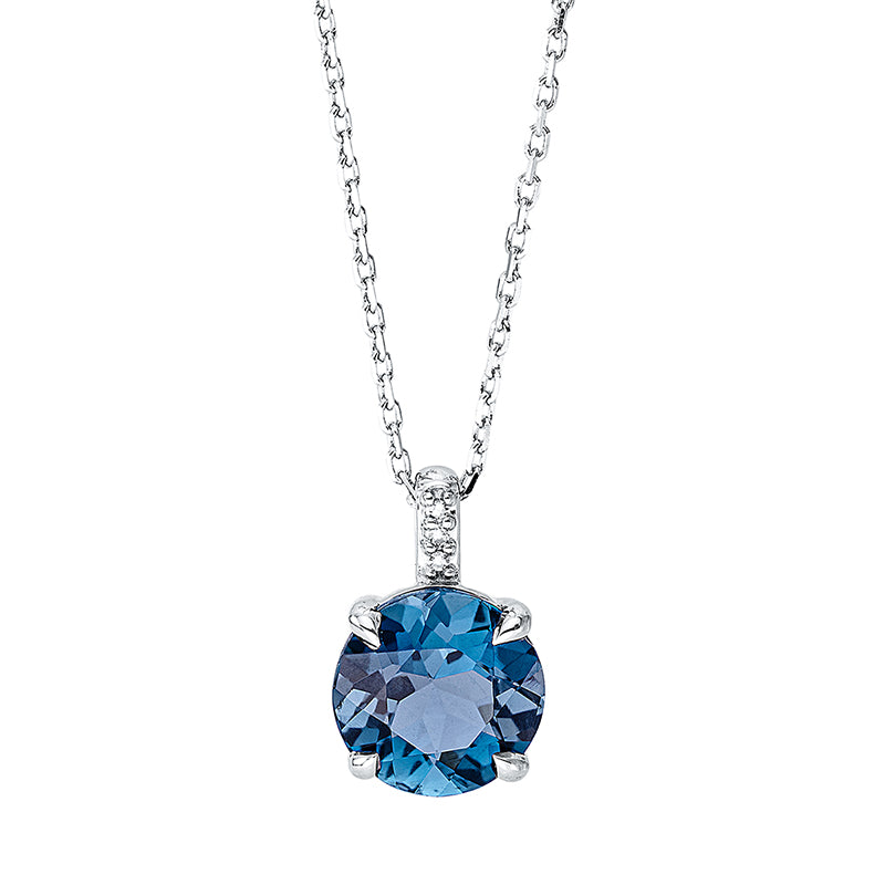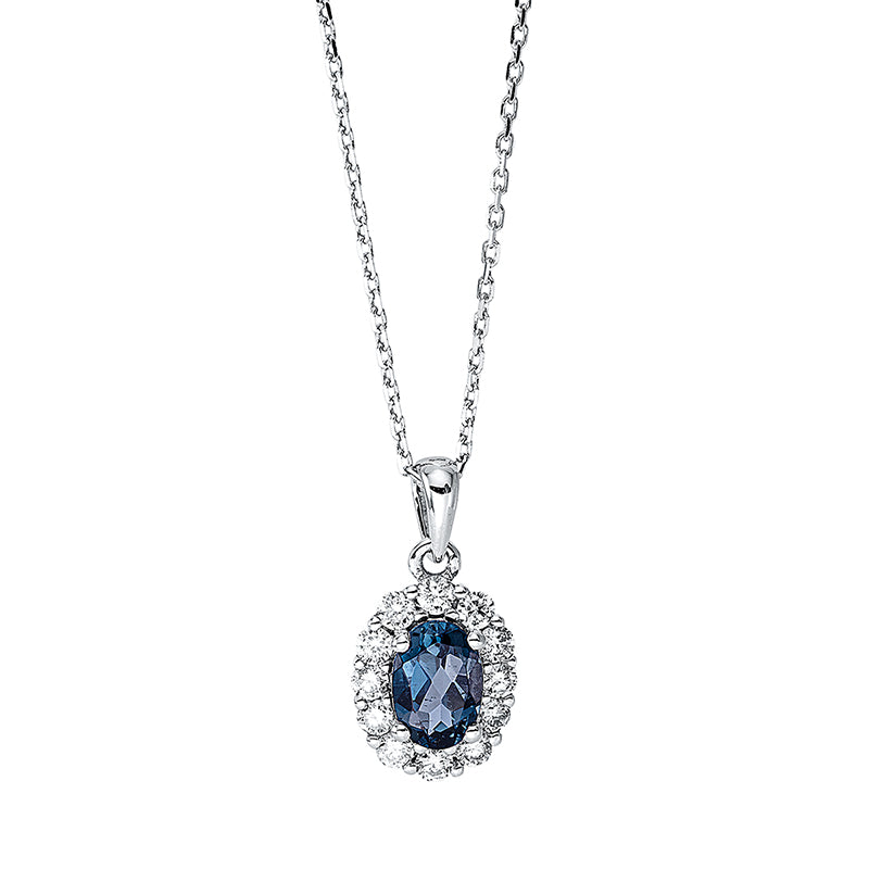 Collier 18 kt WG, mit ZÖ 40 cm + 42 cm, 1 Brill. 0,02 ct, TW-si, 1 Topas 2,30 ct Lond. blue