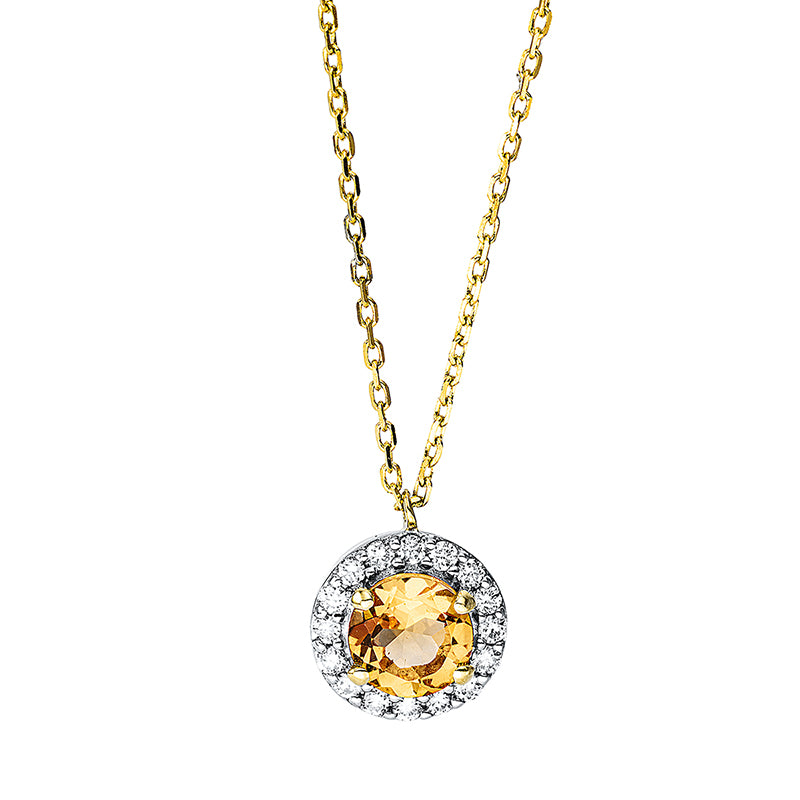 Collier 18 kt GG, mit ZÖ 40 cm + 42 cm, 20 Brill. 0,12 ct, TW-si, 1 Citrin 0,62 ct gelb