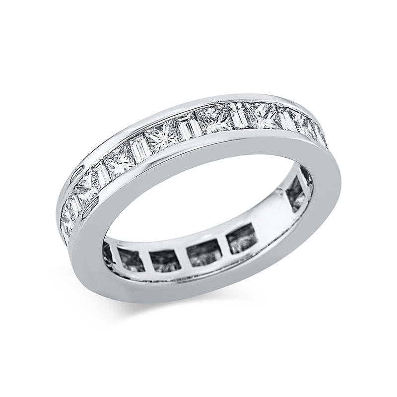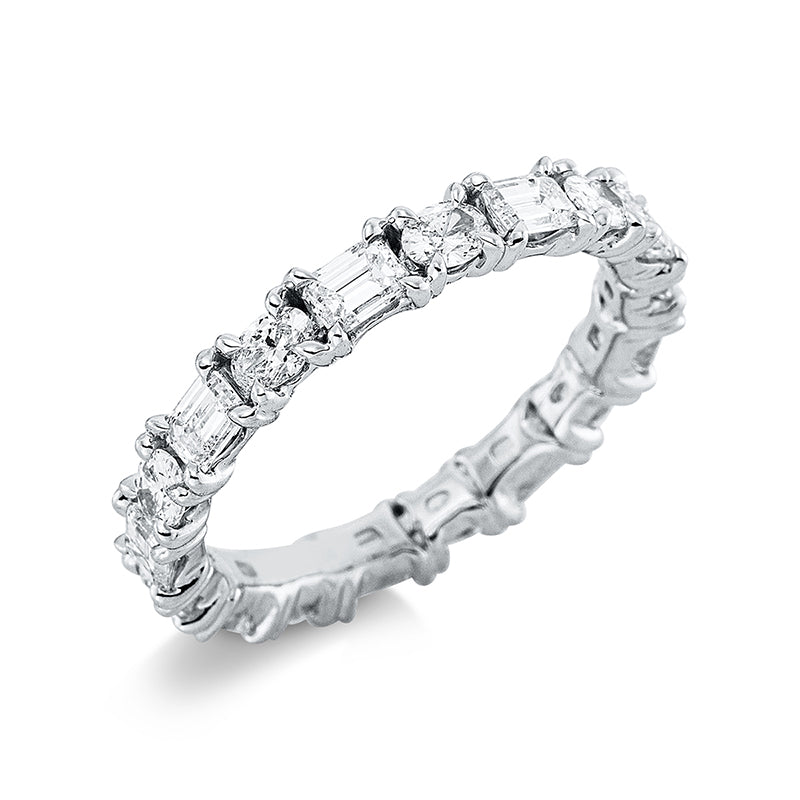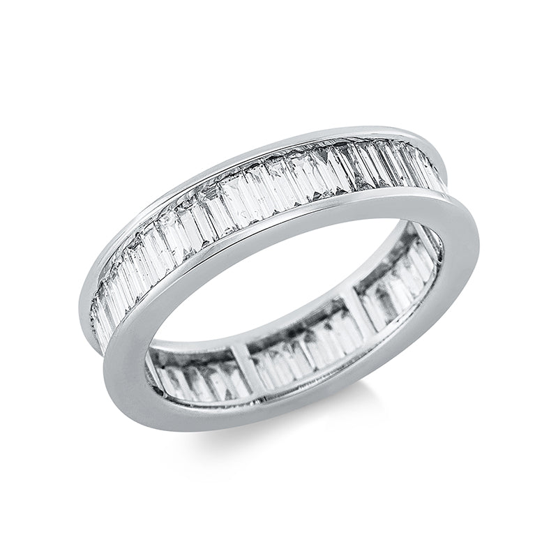 Ring 18 kt WG, 17 Bag. 0,74 ct, TW-vsi, 17 Princ. 1,80 ct, TW-vsi