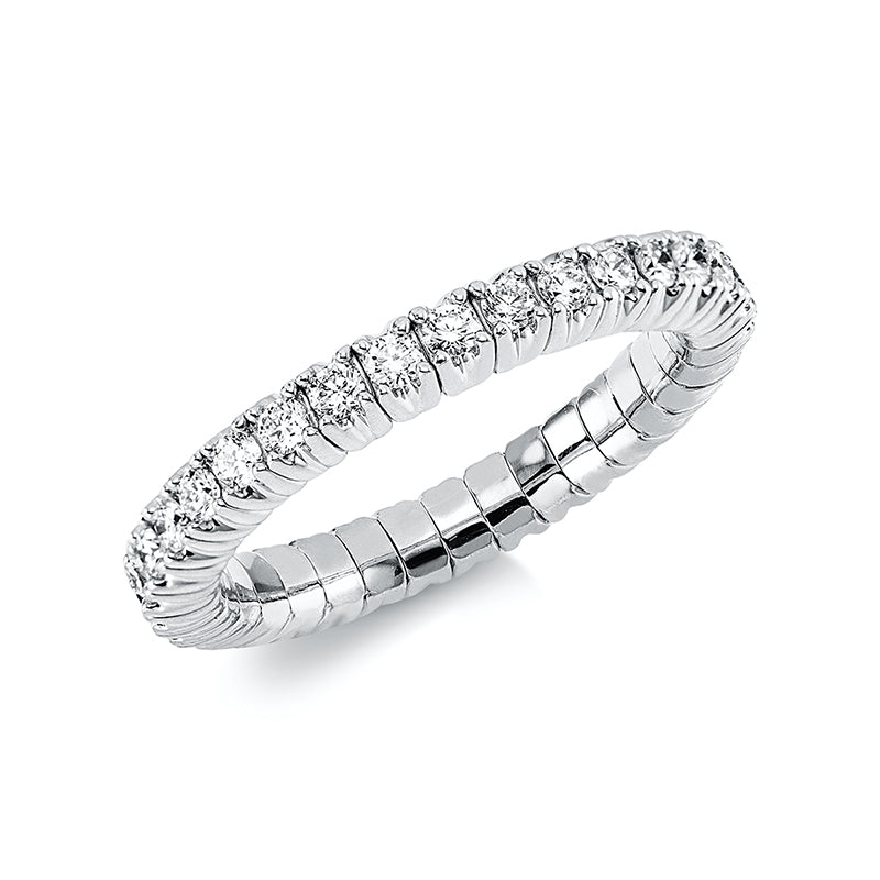 Ring 18 kt WG, Flex-Band, variabel, rhodinier, 33 Brill. 0,82 ct, TW-si