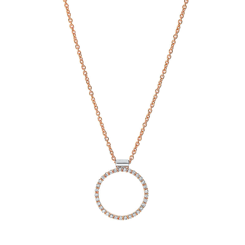 Collier 18 kt RG+WG Kreis. mit ZÖ 40 cm. 33 Brillanten 0.24 ct. TW-si. L:45.0 cm