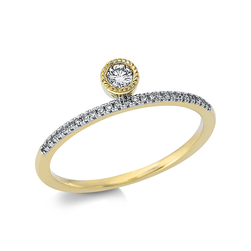 Ring 18 kt GG. 1 Brill. 0.08 ct. TW-si. 25 Diamanten 0.07 ct. TW-si. Weite:54