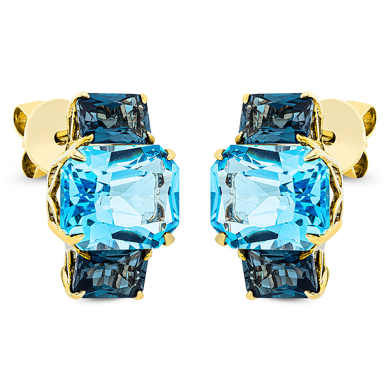 Ohrstecker 4er-Krappe 18 kt GG. 2 Topase 8.60 ct blau. 4 Topase 2.70 ct Lond. blue. H:16.0 mm. B:9.9 mm. S:5.9 mm