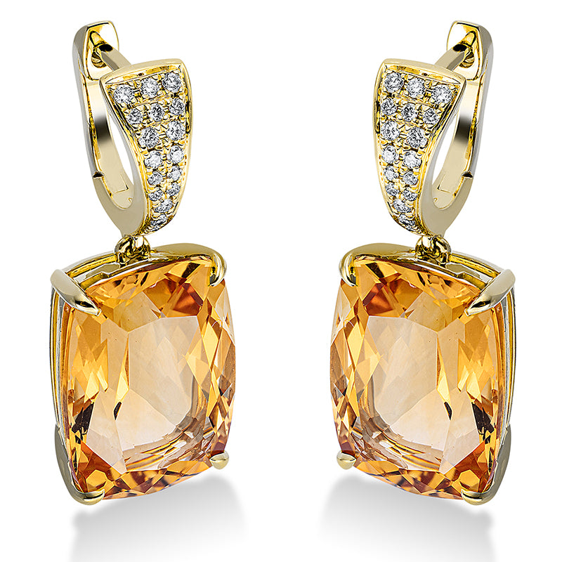 Ohrschmuck 18 kt GG, 34 Brill. 0,17 ct, TW-si, 2 Citrin 13,10 ct gelb