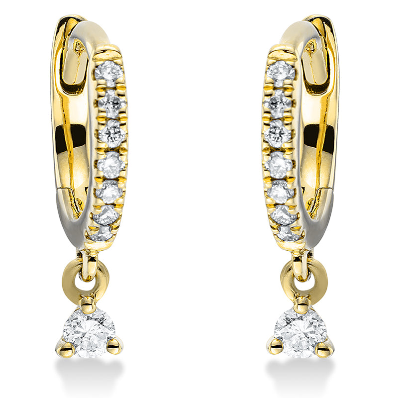 Ohrschmuck 18 kt GG. 2 Brillanten 0.07 ct. TW-si. 14 Brillanten 0.07 ct. TW-si. H:13.0 mm. B:7.8 mm. S:1.3 mm