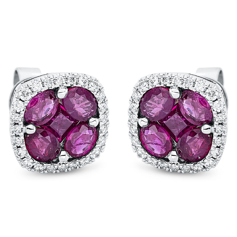 Ohrstecker 18 kt WG. 48 Brillanten 0.26 ct. TW-si. 10 Rubine 1.77 ct rot