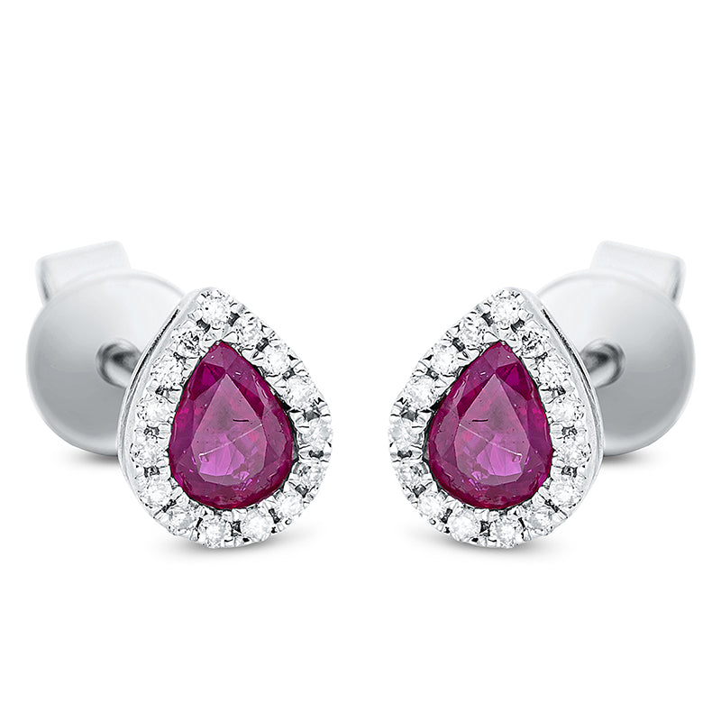 Ohrstecker 18 kt WG. 30 Brillanten 0.06 ct. TW-si. 2 Rubine 0.43 ct rot