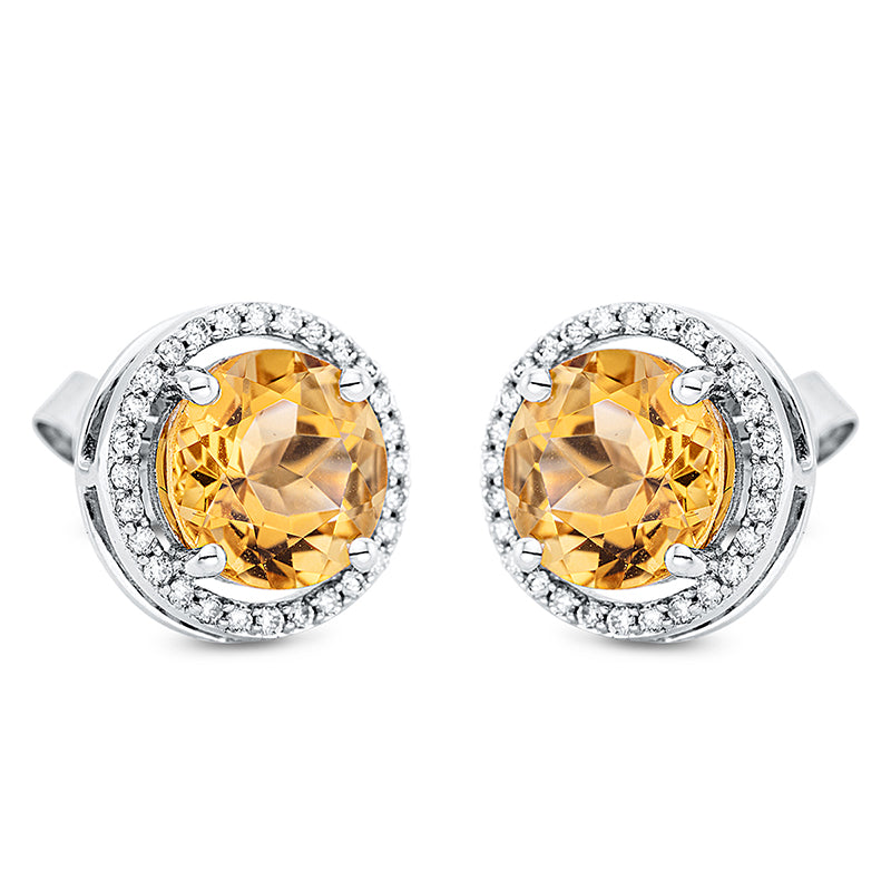 Ohrstecker 4er-Krappe 18 kt WG. 56 Brillanten 0.24 ct. TW-si. 2 Citrin 3.83 ct gelb