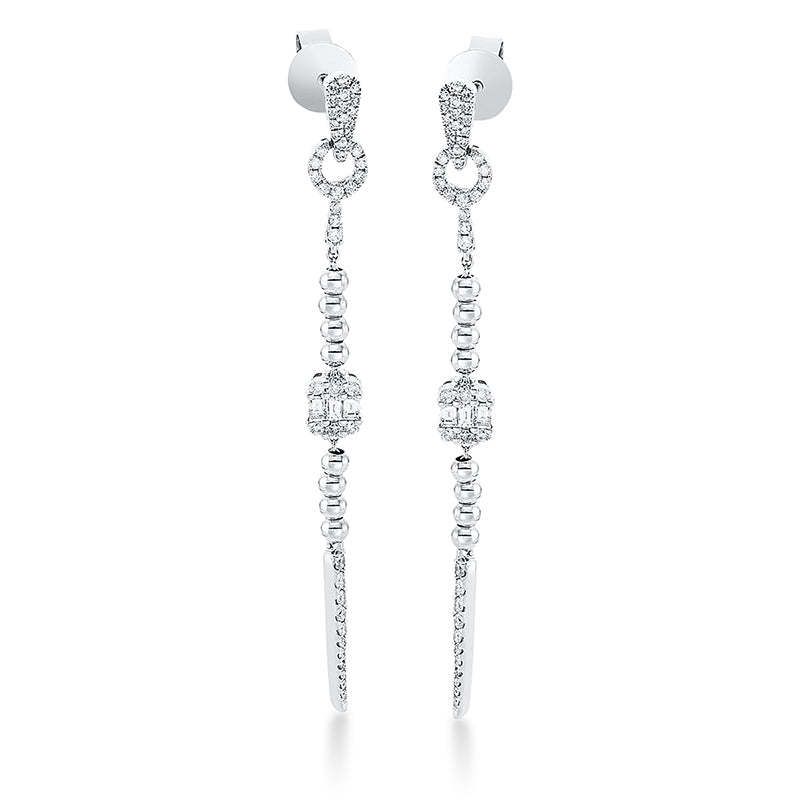 Ohrschmuck 18 kt WG. gold ball. 12 Brillanten 0.14 ct. TW-pi. 6 Baguette 0.11 ct. TW-pi. 78 Brillanten 0.29 ct. TW-pi