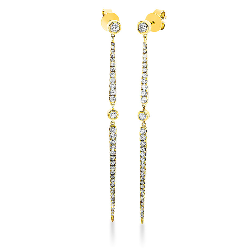 Ohrschmuck 18 kt GG. 34 Brillanten 0.70 ct. TW-pi. 2 Brillanten 0.16 ct. TW-pi. 34 Brillanten 0.18 ct. TW-pi. H:63.0 mm. B:3.2 mm. S:2.0 mm