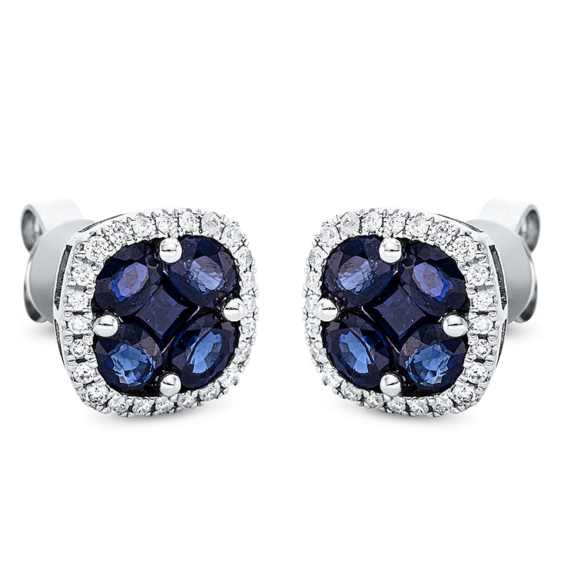 Ohrstecker 18 kt WG. 48 Brillanten 0.26 ct. TW-pi. 10 Saphire 2.32 ct blau
