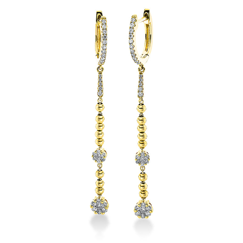 Ohrschmuck 18 kt GG. gold ball. 14 Brillanten 0.18 ct. TW-pi. 2 Brillanten 0.06 ct. TW-pi. 44 Brillanten 0.26 ct. TW-pi. H:50.0 mm. B:4.2 mm. S:2.5 mm