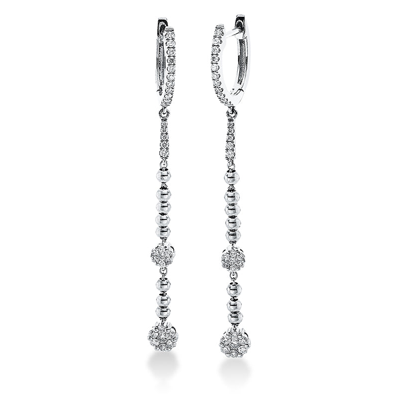 Ohrschmuck 18 kt WG. gold ball. 14 Brillanten 0.18 ct. TW-pi. 2 Brillanten 0.06 ct. TW-pi. 44 Brillanten 0.26 ct. TW-pi. H:50.0 mm. B:4.2 mm. S:2.5 mm
