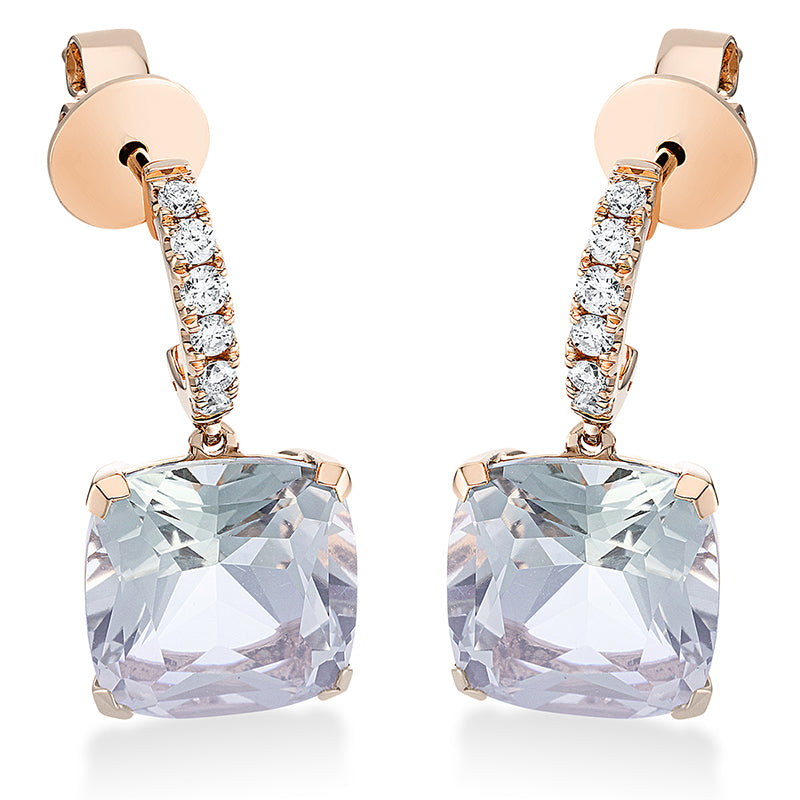 Ohrschmuck 4er-Krappe 18 kt RG. 12 Brillanten 0.23 ct. TW-si. 2 Amethyste 7.70 ct grün. H:21.4 mm. B:10.0 mm. S:6.1 mm