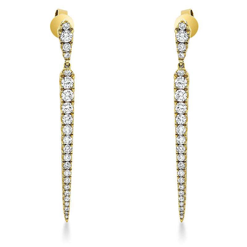 Ohrschmuck 18 kt GG. 16 Brillanten 0.26 ct. TW-si. 10 Brillanten 0.35 ct. TW-si. 4 Brillanten 0.26 ct. TW-si. 6 Brillanten 0.55 ct. TW-si. 10 Brillanten 0.05 ct. TW-si. H:46.6 mm. B:3.1 mm. S:2.2 mm