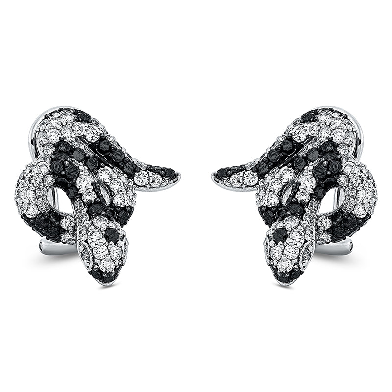 Ohrschmuck 18 kt WG Schlange. Fassung teils schwarz rhodinie. 114 Brillanten 1.64 ct. TW-vsi/si. 80 Brillanten 1.19 ct. schwarz
