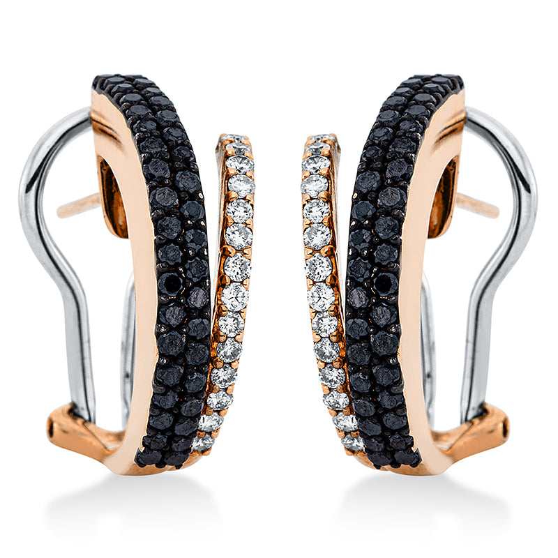 Ohrschmuck 18 kt RG, Fassung teils schwarz rhodinie, 28 Brill. 0,28 ct, TW-vsi/si, 76 Brill. 0,85 ct, schwarz