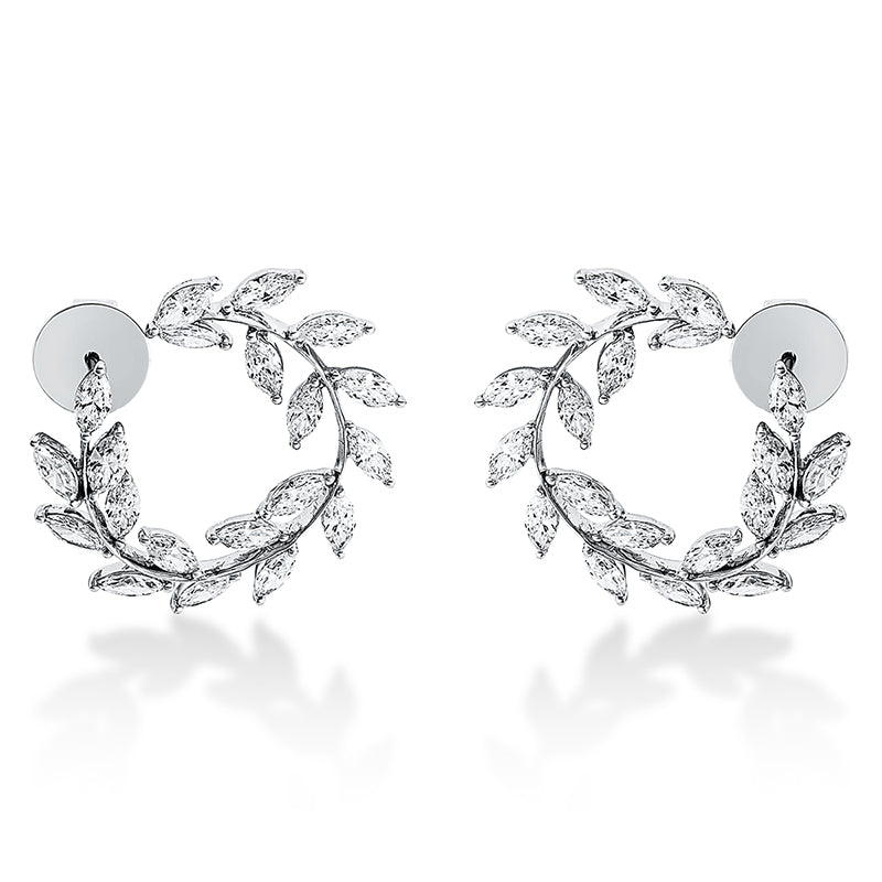 Ohrschmuck 18 kt WG. 40 Navette 4.28 ct. TW-vsi. H:26.0 mm. B:27.0 mm. S:3.0 mm