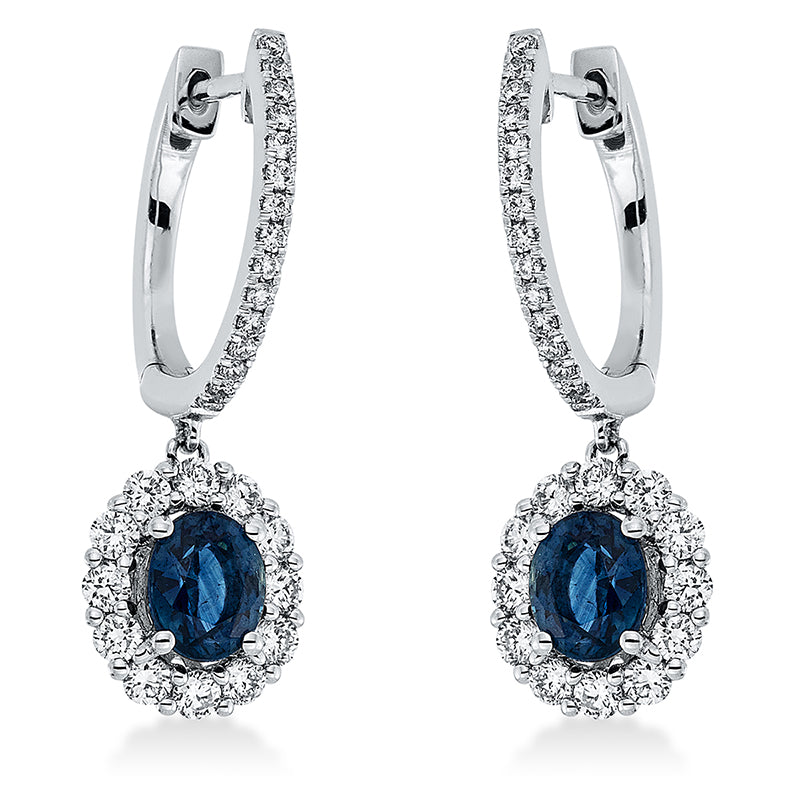 Ohrschmuck 18 kt WG. 54 Brillanten 0.56 ct. TW-si. 2 Saphire 1.11 ct blau